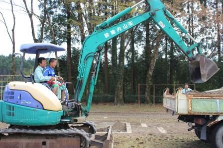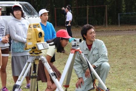 測量機器や土木機械の操作や作業を体験しました。
