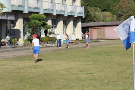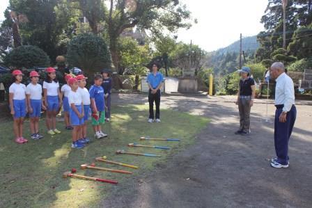 そして、午後はクラブ活動で地域の方にグランドゴルフを教えていただきました。