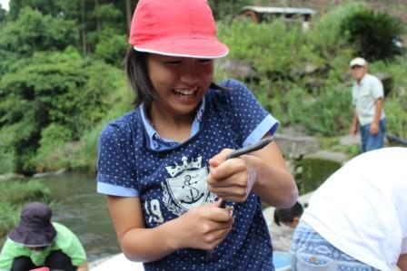はじめて、つかむウナギの感触に思わず「キャー」と声が出ました。