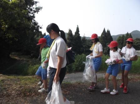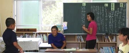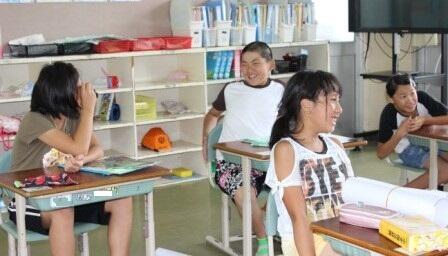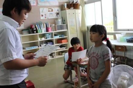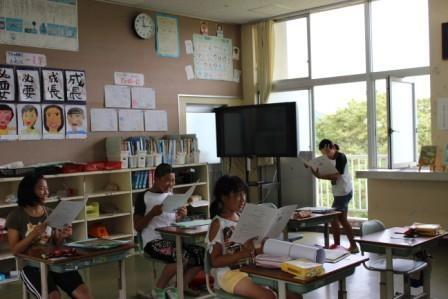 夕方、地域の放送を使って、国語の教科書などを読みます。