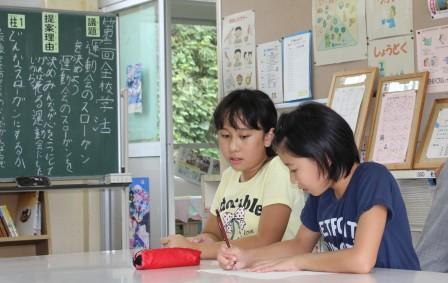 みんなの気持ちをひとつにするために、スローガンを話し合いました。