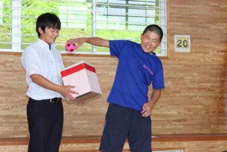 今日は、ワールドカップのサッカーボール(レプリカ)の贈呈式。