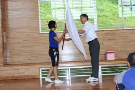 決まった色の 団旗を 校長先生が団長に渡されます。