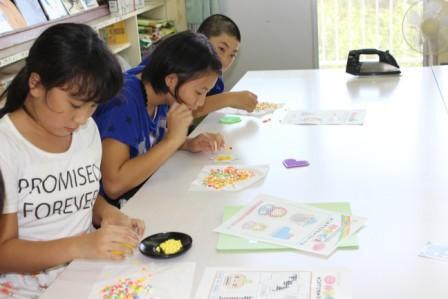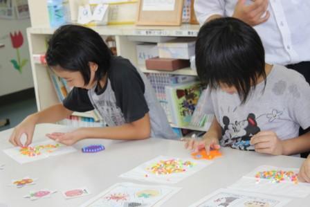 小さな小さなビーズを あつかうので みんな 真剣そのものでした。