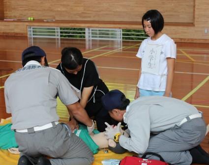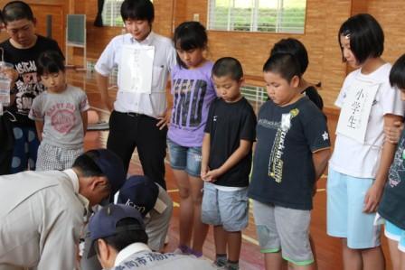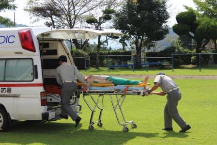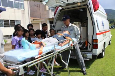 笠祇小学校には、4人の消防署の方が、救急車で駆け付けてくださいました。