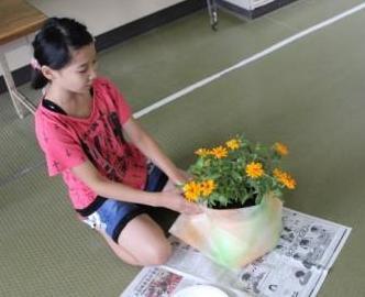 自分たちで育てて、ラッピングしたお花も、喜んでいただきました。