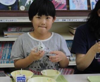 おにぎりを にぎります。