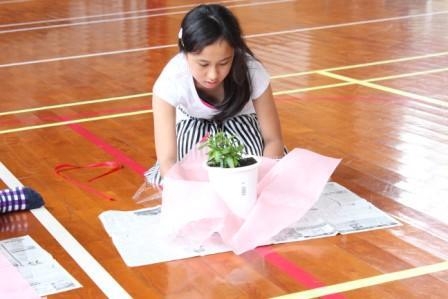 自分で植えて育ててきた鉢を一人一人自分でラッピングしました。
