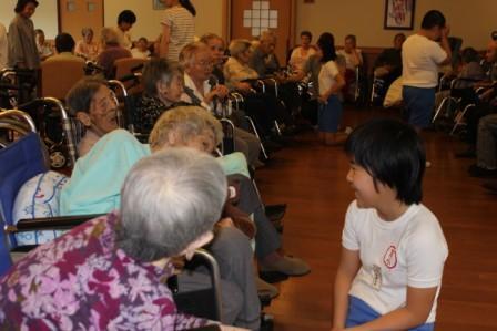 子ども達は、おしゃべりをしたり肩たたきをしたりしてふれあいの時を楽しく過ごさせていただきました。お一人お一人とのふれあいで、とても温かい気持ちになりました。