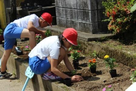 みなさん、きれいに咲いたら、笠祇小学校に見に来て下さいね。