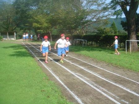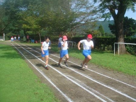 雨上がりで運動場のコンディションが悪い中、みんな、一生懸命走っていました。