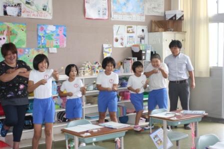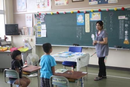 1・2年生は、道徳の授業でした。先生のお話をワクワクしながら聞いていました。先生の質問にも元気よくこたえていました。