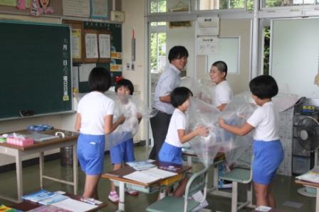3・4年生は、理科の授業でした。空気のお勉強で、空気鉄砲等をつかって実験を行いました。子ども達は、実験がとても大好きです。いろいろな空気の実験を楽しく行うことができました。特に盛り上がったのが、空気鉄砲です。遠くに飛んだときは、すごい歓声が上がっていました。