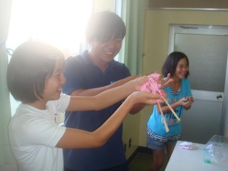「気持ち悪い~」という子どももいれば「気持ちいい~」という子どももいましたが、みんなとっても笑顔でした。