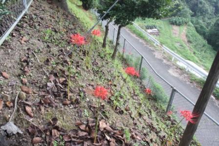 子ども達が登校してくる通路にも日に日に彼岸花が咲き始めています。子ども達は花を摘み取ることもなく、優しい心で季節の移り変わりを眺めて楽しんでいます。