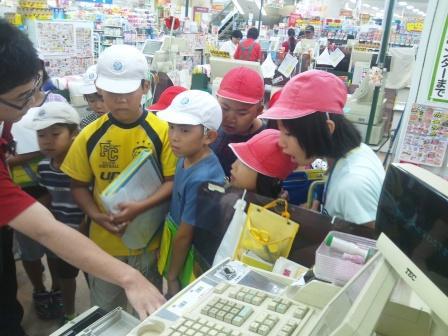 3・4年生が、金谷小学校の3・4年生と一緒にスーパーへ行きました。