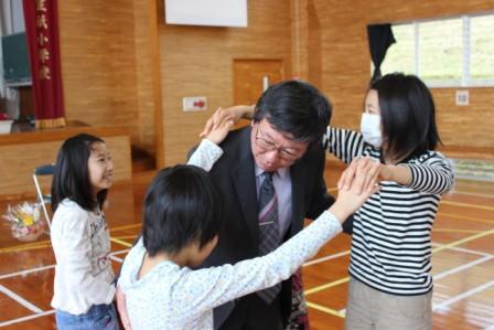 最後は、全校児童が先生を囲んで、別れを惜しんでいました。
