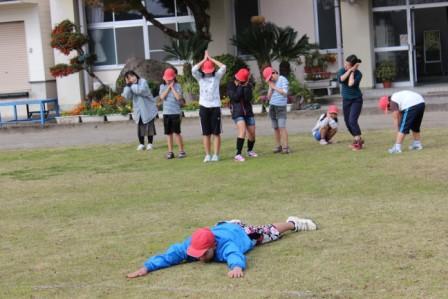 お昼休みに かさっこ達が 運動場で 遊んでいます。