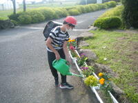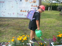 毎日下校前に、環境委員会の子どもたちが、花に水をかけてくれています。9月9日に教育委員会(国スポ推進課)から届いた花の苗を、大事に育てています。