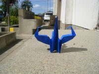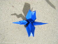 見方によっては花に見えたり、ポーズをとっている人に見えたりする不思議な折り鶴でした。