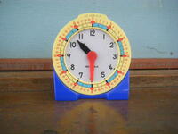 昨日のことです。1年生が、時計の模型を使って考えていました。