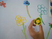 4年生は図工で、ピーマンやオクラ、歯ブラシなどを使って絵を描いていました。形の面白さにクスッとし、仕上がりの違いヘェ~と感心しながら作品をつくっていました。