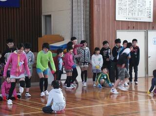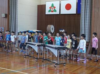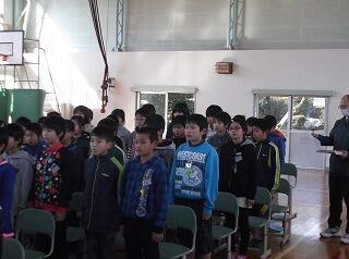自転車大会前に、北方小学校で行った壮行会の様子。