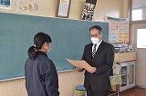 式では、代表児童3名が新年及び3学期に頑張りたいことをしっかりと発表してくれました。校長先生からは、人の心を「3つのコップ」にたとえて、周りの人からのアドバイスやいろいろな言葉をしっかり聞き、自分なりに受け止めて今後の自分の言動に生かすことの大切さについての話がありました。今回は久々にピアノ伴奏に合わせてマスクを着用したまま校歌も歌いました。式の終了後には、15日(土)に行われる「串間市青少年の声を聞く会」に本校代表として出場する代表児童の発表も行いました。とても堂々とした立派な発表をしてくれました。