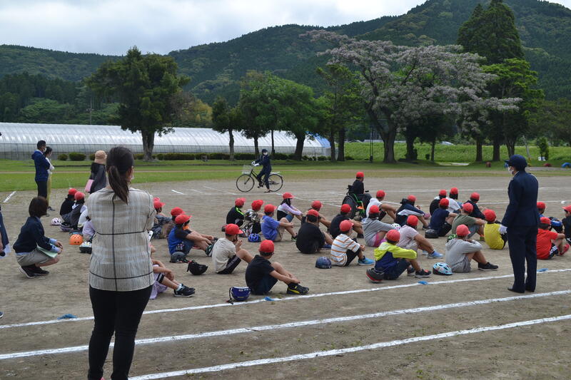 地震発生の放送から児童は真剣に取り組み、運動場に1次避難をし、津波が想定されるため2次避難として新たな避難場所へ移動しました。移動の際も無言で素早く行動し、10分以内で全校児童が避難場所に移動できました。