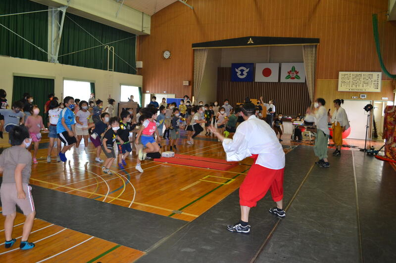 体を自由自在に操り、繰り広げられる舞台に子どもたちは見入っていました。