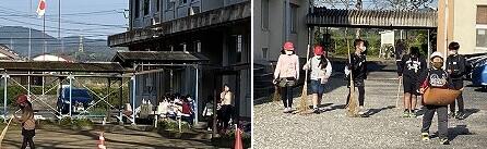 到着した子供たちの中には、掲揚台に校旗をあげてくれる子ども、挨拶運動に来てくれるこども、玄関の清掃を行ってくれる子どもと活躍してくれています。