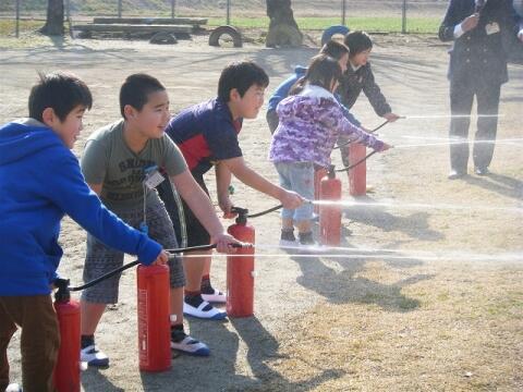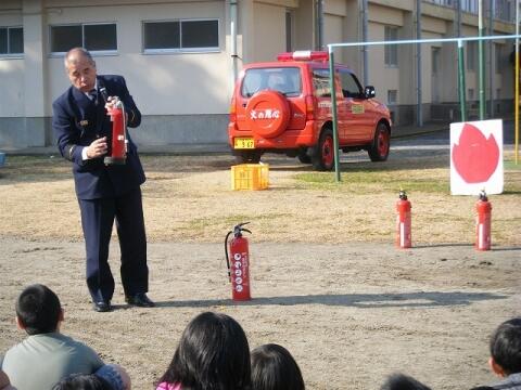 串間市消防本部の方から、消火器の使い方を教えていただきました。