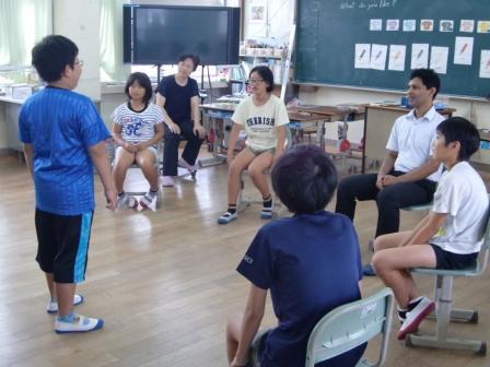 5・6年生は、週に1度外国語活動の時間があり、外国語に親しんだり、国際理解を深めたりしています。その中で、月に1回は、串間市のALT シューモン・チュードリー先生が来て、指導をしていただいています。シューモン先生との会話を通して、英語に親しんでいっています。