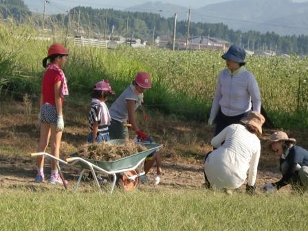 8月21日(日)は、PTA親子奉仕作業が行われました。北方小学校の児童と保護者の方々が集まって、学校の環境美化に取り組みました。お父さん方は、運動場の草刈りや通学路の草刈り、運動場の整地などがんばっていただきました。児童とお母さん方は、運動場の草取りや学級園の草取りなどがんばっていただきました。みなさん、とても暑い中にいっしょうけんめい動いてくださり、結果、学校の環境がとてもよくなりました。あと1週間で2学期が始まります。きれいになった運動場で、運動会の練習が始まります。児童の皆さんはがんばってください。
