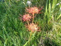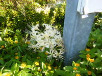 赤い彼岸花は運動場に、白い彼岸花は正門付近に咲いていました。緑の中にポツンと…とてもきれいでした。