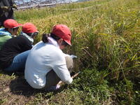 今回もJA青年部のご協力のもと4年生と5年生が一緒に稲を刈ぅた