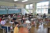 朝から児童の元気な声が校内で聞かれ、2学期が始まったことを実感できました。始業式については、国内及び県内での新型コロナウイルス感染症の急拡大を受けて、校内放送を活用しての実施となりました。