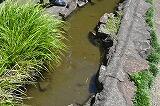 池に放たれた直後から、メダカたちは池の中を元気よく泳ぎ回っていました。児童もメダカ池のメダカが増えたことを喜んでいました。