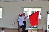 6年生の団長が箱を選び、なかから赤と白のタスキを取り出して団の色が決定しました。コロナ禍なので大声を出すことはできませんでしたが、団の色が決まったことで児童の運動会に向けての意欲も高まっていました。各団長に校長先生から団旗が授与された後、団に分かれて団長、副団長、リーダーの紹介や挨拶がありました。新型コロナウイルス感染症の影響で今年の運動会もいろいろな制限はありますが、きっと心に残る運動会になるように全校児童が頑張ってくれることでしょう!