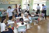 1年生の教室では、代表児童に校長先生から青少年赤十字の胸章の授与もありました。短い時間ではありましたが、全校児童がやさしさと思いやりの心の大切さを実感することができた時間となりました。