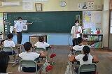 串間中学校から栄養教諭の先生に来校していただき、「なんでも食べる」ことをテーマに色々な食べ物には自分たちが成長していくために必要な栄養がたくさん含まれていることを理解し、好き嫌いなく食事をすることの大切さについて学習しました。
