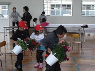 子どもたちは、正門で元気なあいさつをしたかと思ったら、すぐに庭そうじや花だんの草ぬきなどの活動に精を出しました。今年も楽しみです。