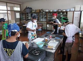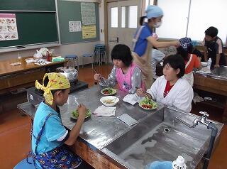 5年生にとっては初めての調理実習でした。野菜を遠慮しながらゆっくり包丁で切っていました。初めての調理実習でしたが、グループで協力して、一生懸命、野菜を切ったり、ゆでたり、あえたりしていました。