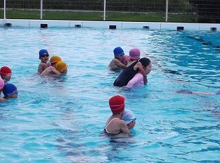 小雨の中の水泳でしたが、子どもたちは元気いっぱいでした。