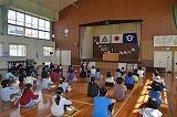 今年は、新型コロナウイルス感染症への対応として体育館での密集を避けるために、全校ではなく各学年部ごとに実施しました。