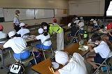 串間消防署と旭消防設備の方にご協力いただき、火災の際に気を付けることや火災を起こさないためのポイント、串間市での火災発生の状況及び消火器の使い方などを詳しく説明していただきました。