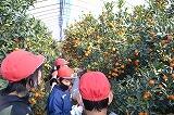 収穫場所のハウスの中に入った児童は、見事なキンカンがたわわに実っていることに大感激でした。児童は興奮しながらも、見事な大きさとおいしそうな色合いのキンカンをあれこれと迷いながら一つ一つ丁寧に収穫していました。1人1個ずつ試食した感想は、甘くて、みずみずしいなど、キンカンのおいしさにも大興奮でした!