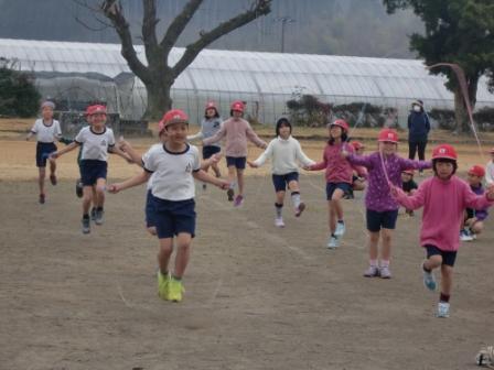 後半の長縄では、縦割りの班で跳ぶ回数を競いました。6年生がうまく回してあげると、1年生も上手に跳ぶことができていました。