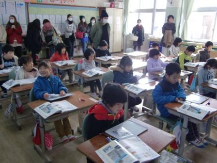 1月の参観日と読み聞かせが1月24日(火)にありました。朝の寒い中に多くの保護者の方が参観に来られて、凍えるような教室でも子どもたちは元気にがんばっていました。業間に保護者の読み聞かせがあり、楽しい本に子どもたちは喜んでいました。