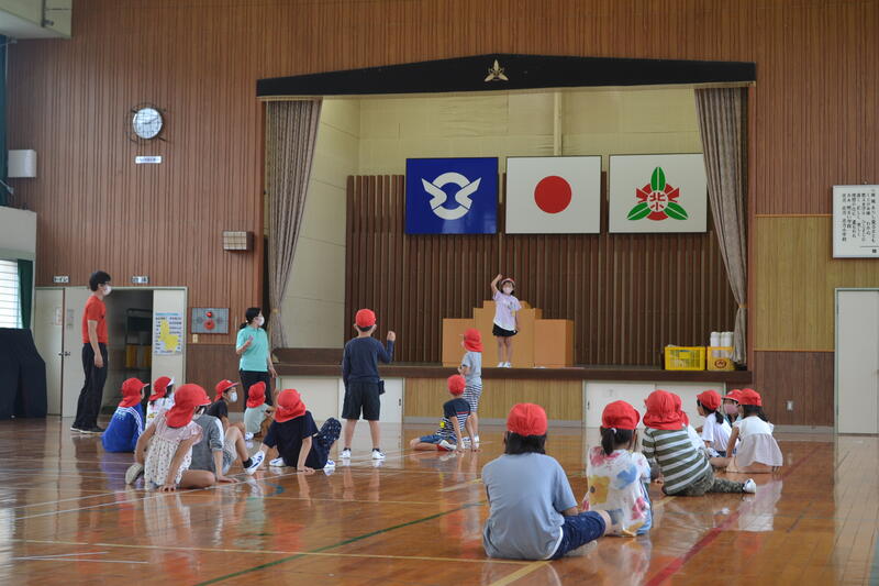 体を自由自在に操り、繰り広げられる舞台に子どもたちは見入っていました。